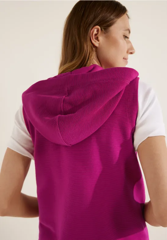 Lässig und sportlich! Dieser ärmellose Damen Hoodie Sweatpullunder von CECIL hat eine Kapuze mit Tunnelzug, einen Reißverschluss und eine Kängurutasche. Die Ottoman Streifen Struktur verleiht dem Pullunder einen trendigen Look. Ideal für entspannte Tage.