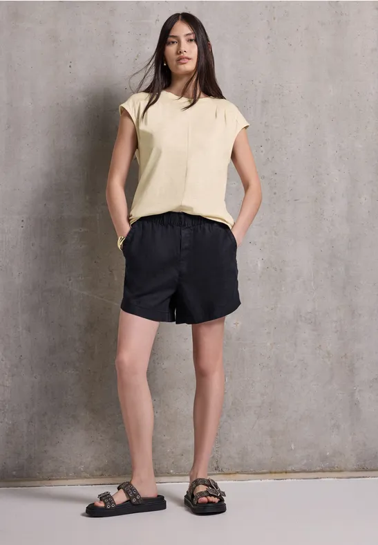 Das Jersey Shirt von Street One Studio für Damen setzt mit raffinierten Raffungen an den Schultern feminine Akzente. Der weiche Baumwoll-Modalmix sorgt für ein angenehmes Tragegefühl.