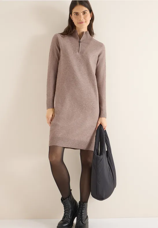 Dieses kuschelige Kleid von CECIL für Damen ist dein gemütlicher Begleiter für kühöe Tage. Lange Ärmel und der Troyerkragen mit Zipper verleihen dem Kleid einen cozy Look. Die weiche Qualität sorgt für einen angenehmen Tragekomfort und macht das Kleid zu deinem neuen Lieblingsteil.