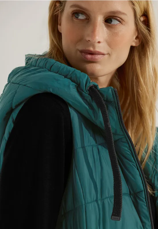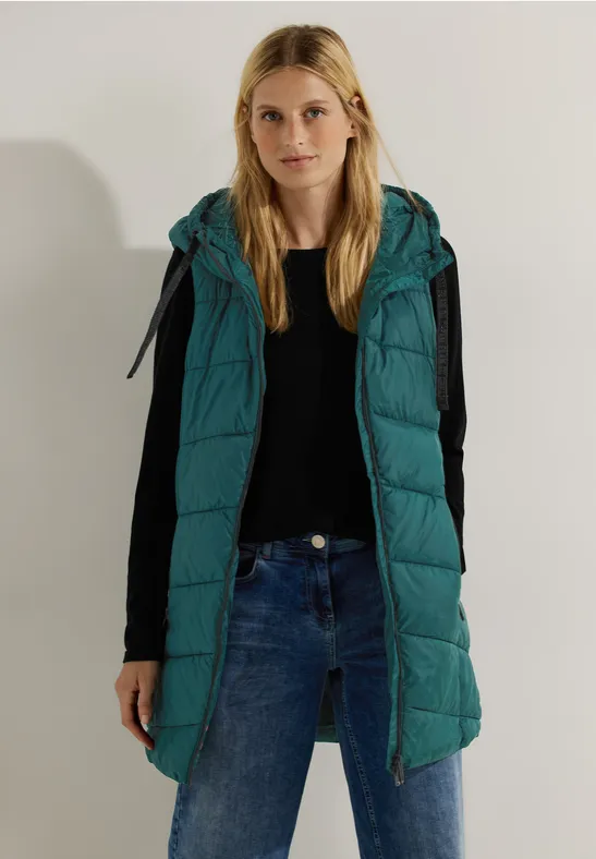 Entdecke deine Abenteuerlust! Die lang geschnittene Steppweste von CECIL mit ihrer Kapuze, dem Tunnelzug und dem 2-Wege Reißverschluss ist der ideale Begleiter für aktive Tage. Mit ihren verschließbaren Taschen bietet sie ausreichend Stauraum für deine Essentials. Egal, ob du sie über einem Pullover oder einem langärmeligen Shirt trägst, diese unifarbene Weste verleiht deinem Look eine lässige und dennoch stylische Note.