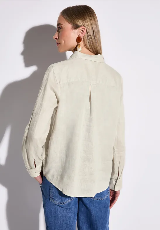 Die Leinen-Hemdbluse von Street One für Damen punktet mit luftigem Tragekomfort. Der Hemdkragen, die Brusttaschen und die Turn-Up-Ärmel sorgen für einen lässigen Look. Die leichte Leinenqualität macht sie perfekt für warme Tage.
